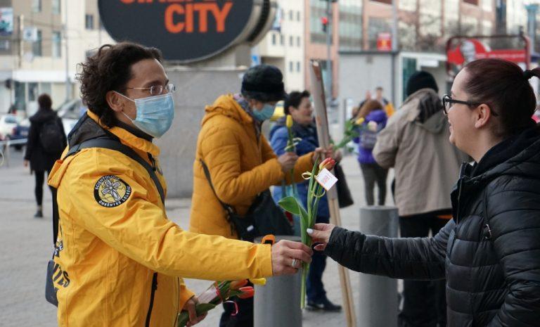 Örömkönnyek és mosoly a nőnapi virágosztáson